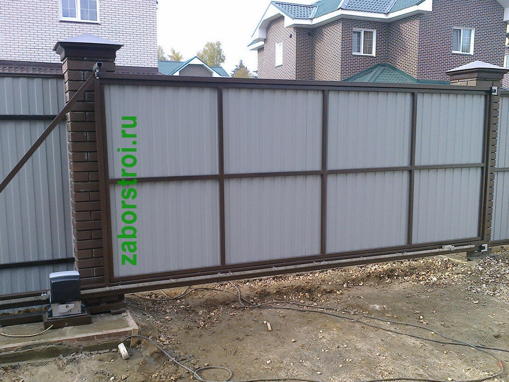 Ворота распашные изготавливаются на жёстком каркасе из металлического профиля 60 на 40 с возможностью подключения автоматики для управления дистанционно через пульт. Обычно хватает ширины для въезда от 3 до 4 метра.