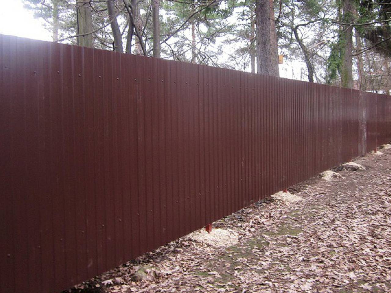 При производстве забора используется на выбор профнастил марок С8, С20, С21 с разной высотой волны и толщиной оцинкованного стального листа от 0.4 до 0.5 мм. Цвет можно выбрать по таблице RAL одностороннего или двустороннего окраса.